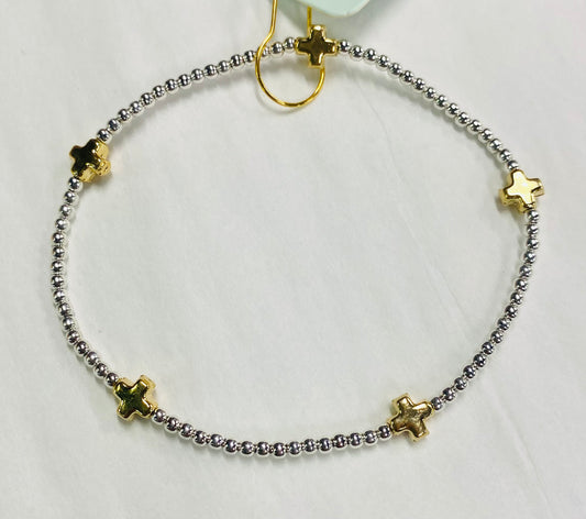 Signature Cross Small Gold Pattern 2mm Bead Bracelet