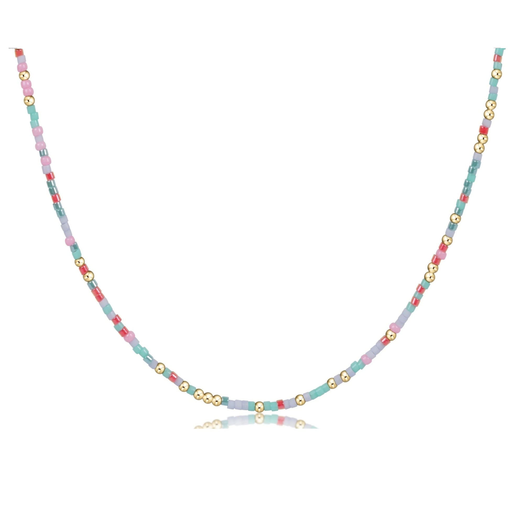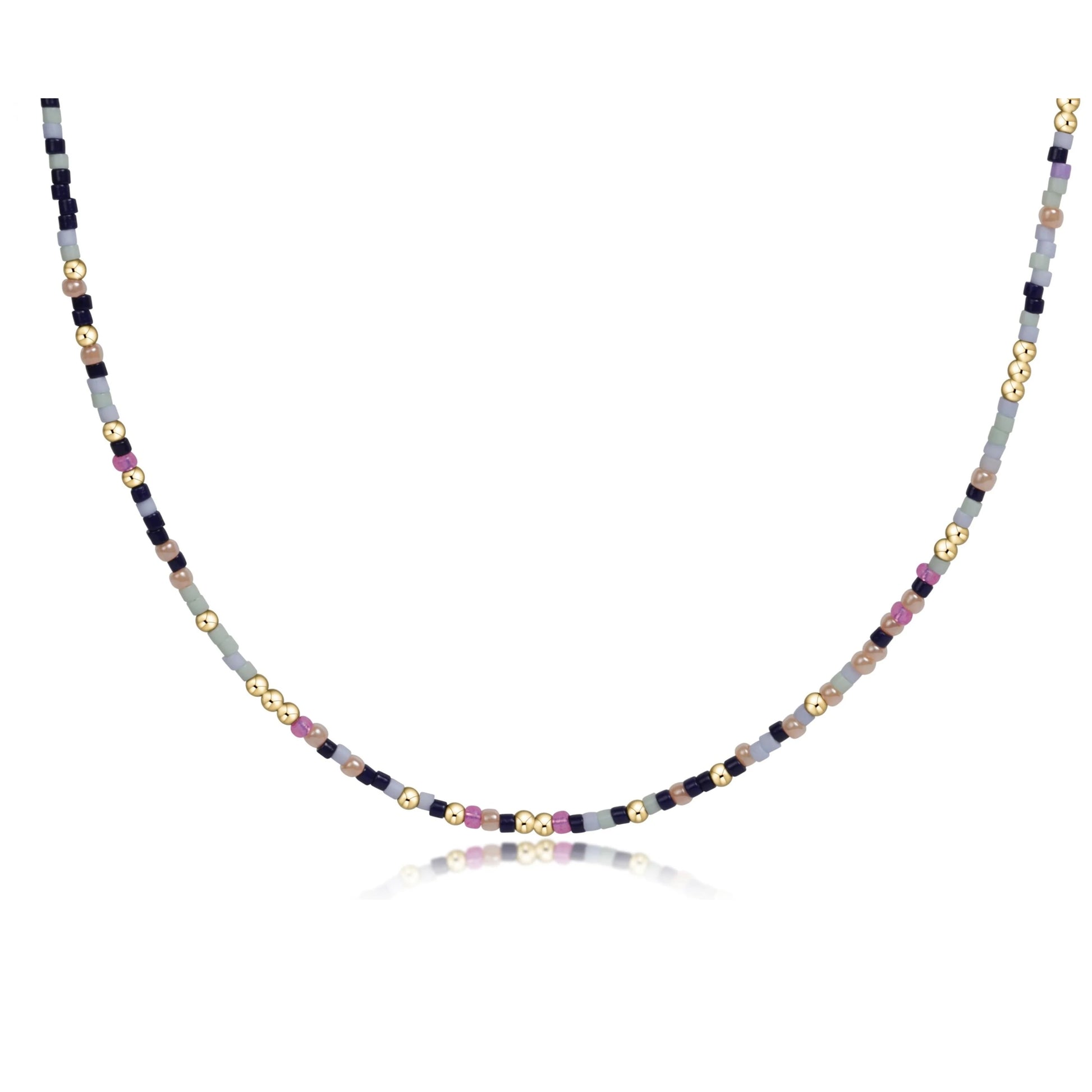 - Made with various colors of randomly mixed 2mm seed beads and 2mm 14k gold-filled beads