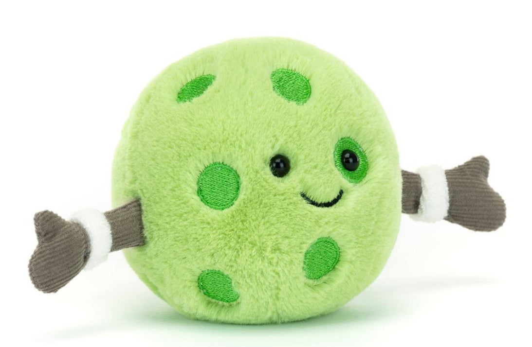 A perky green go-getter who is constantly ready for a game (or two), Amuseables Sports Pickleball loves sports so much she’s also a part-time umpire!