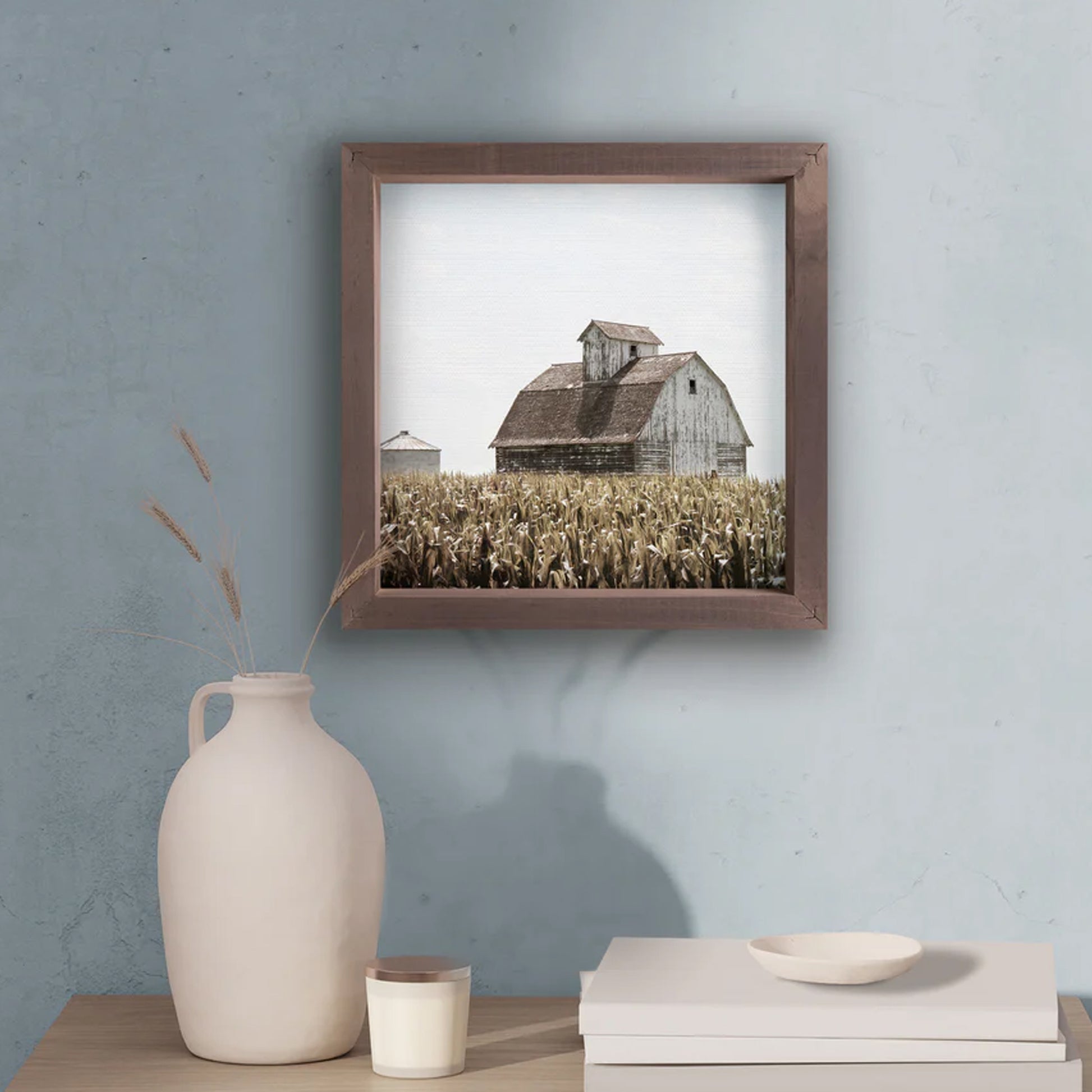 This category features beautiful art applied to primed, textured linen giving each piece the look and feel of hand painting. Distinguished, wood frames surround each piece and feature a dark brown finish. This unique product creates an elevated appearance by combining a variety of natural elements.