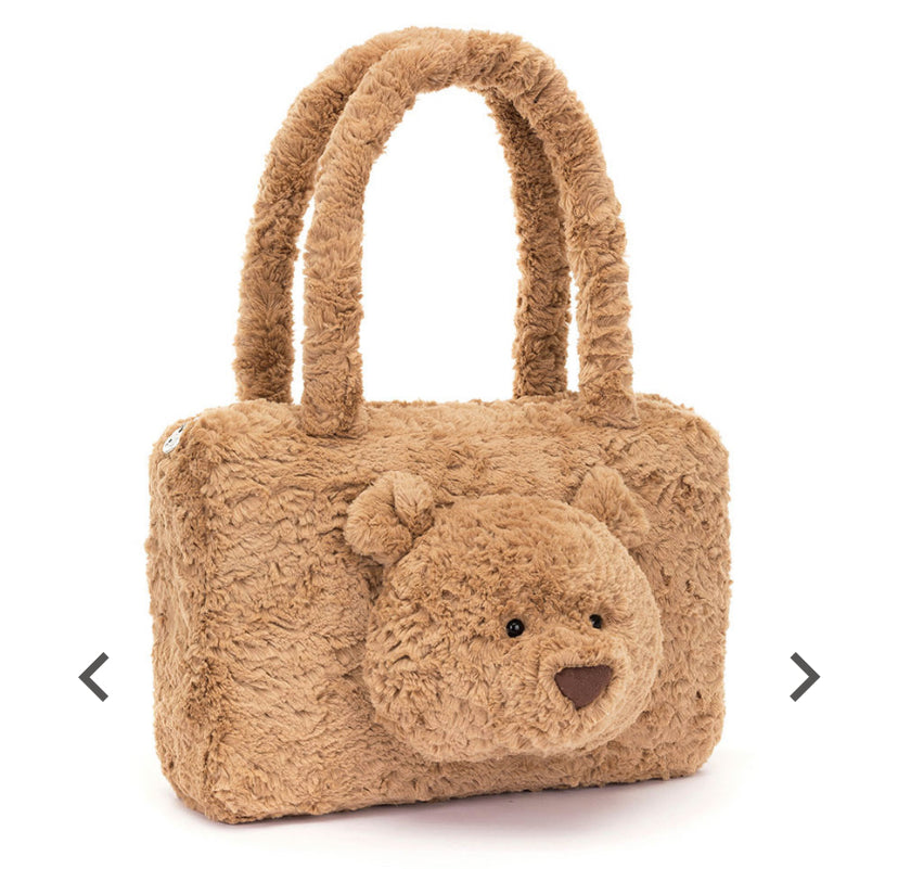 Sometimes it takes Bartholomew Bear Tote Bag to bear the load. This strong, cozy bag has soft fur handles, a cotton lining and a silver zipper. Best of all, it features Bartholomew Bear’s chunky muzzle, fuzzy round ears and suedette nose.