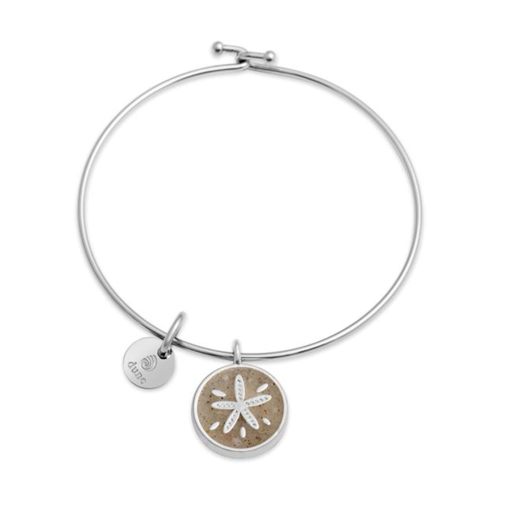 Keep your beachy adventures close at hand with our Sand Dollar bangle. Fill yours with sand or earth elements from your most cherished travel memory or favorite beach destination so you can “live for the moment, then take it with you”. Charm measures approximately 25mm high with bale x 18mm wide, about the size of a dime.