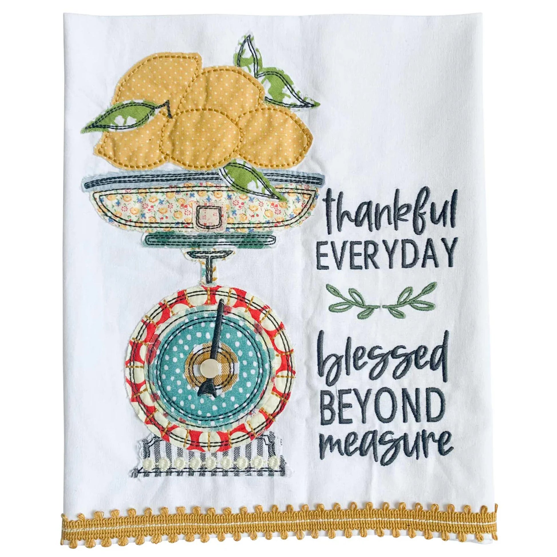 Elevate your bathroom or kitchen with our "Blessed Beyond Measure" fair-trade hand towel. Made with love and care by skilled artisans, this towel is a beautiful reminder to count your blessings every day and to be "thankful everyday!" The fun design is a one-of-a-kind Glory Haus design making this a unique addition to any home!