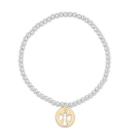 Classic Sterling 3mm Bead Bracelet-Mixed Metal Guardian Angel Disc