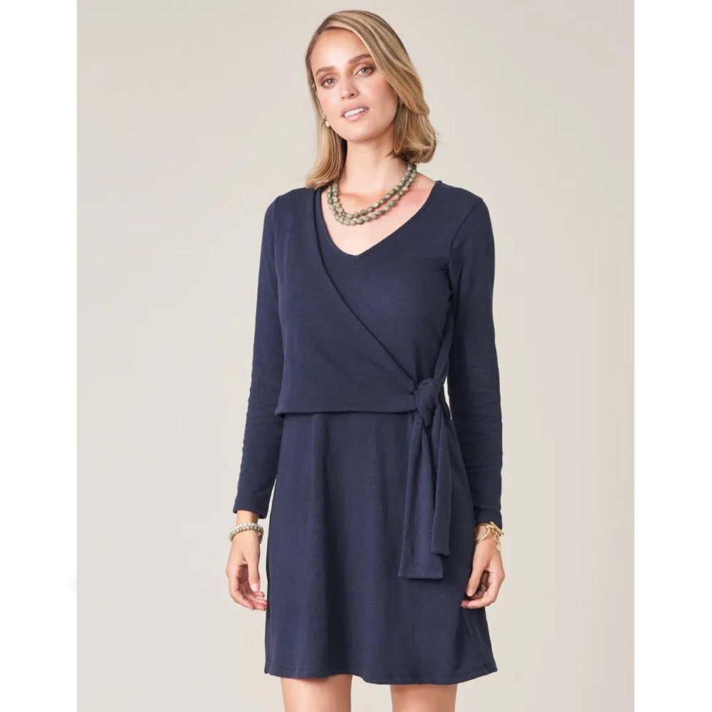 Wrap yourself in style & comfort with our soft, luxe Pima cotton blend long sleeve Deanna Wrap slub Dress in slate blue. Wear with a wide brim fedora and boots during the day, then dress is up with heels for the evening! This dress is created from the same ultra soft Pima cotton modal slub that your favorite Hudson Fringe Top is made from!