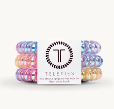 Hold your hair and enhance your style with TELETIES. The strong grip, no rip hair tie that doubles as a bracelet. Strong, pretty and stylish, TELETIES are designed to withstand everyday demands while taking your look to the next level.
