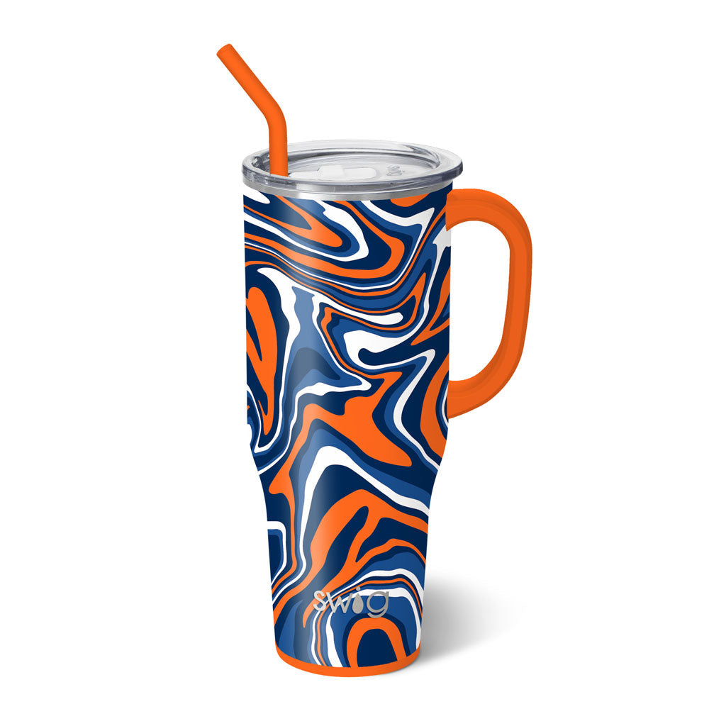 Hydrating has never been easier with our 40oz Mega Mug! The cup holder friendly frame, comfort-grip handle and flexi-tip straw with a standard plastic straw base come together to create your new favorite Swig!