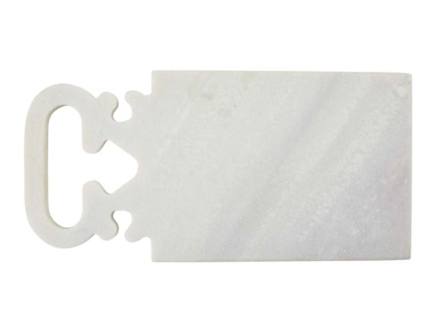 Showcase this fancy scroll marble serving board at your next event. The white marble board features intricate scroll handle. This piece is part of our classic home collection and celebrates neutral decor that complement and blend effortlessly. The board is made completely of marble and should be hand washed only, do not soak and dry immediately.