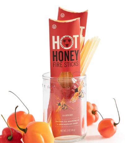 A honey straw that brings the heat! SBC Fire Sticks are a smoother (only 70% the heat) version than our regular Hot Honey to spark your taste buds. Fire up picnics and takeout with this sizzling grab-and-go condiment, boost your body before a workout, or savor anytime for a flaming sweet, healthy treat.