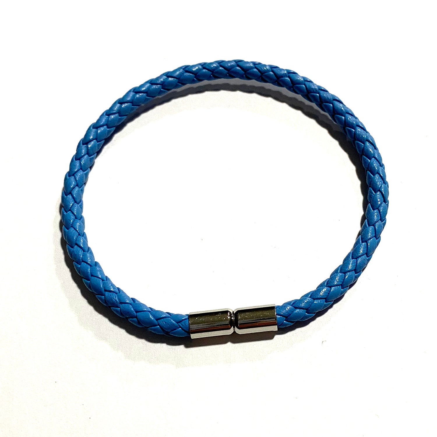 These bracelets are made of leather and have a magnetic closure for your convenience.
