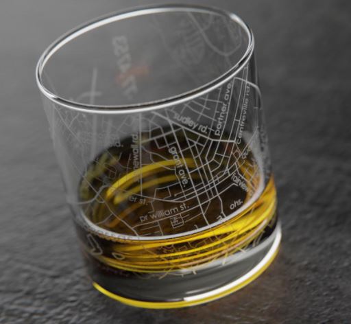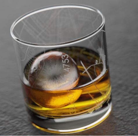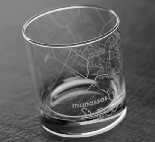 Our best selling 11 oz. rocks glass & whiskey glassware can be custom-made with a stunningly detailed map of Manassas, VA
