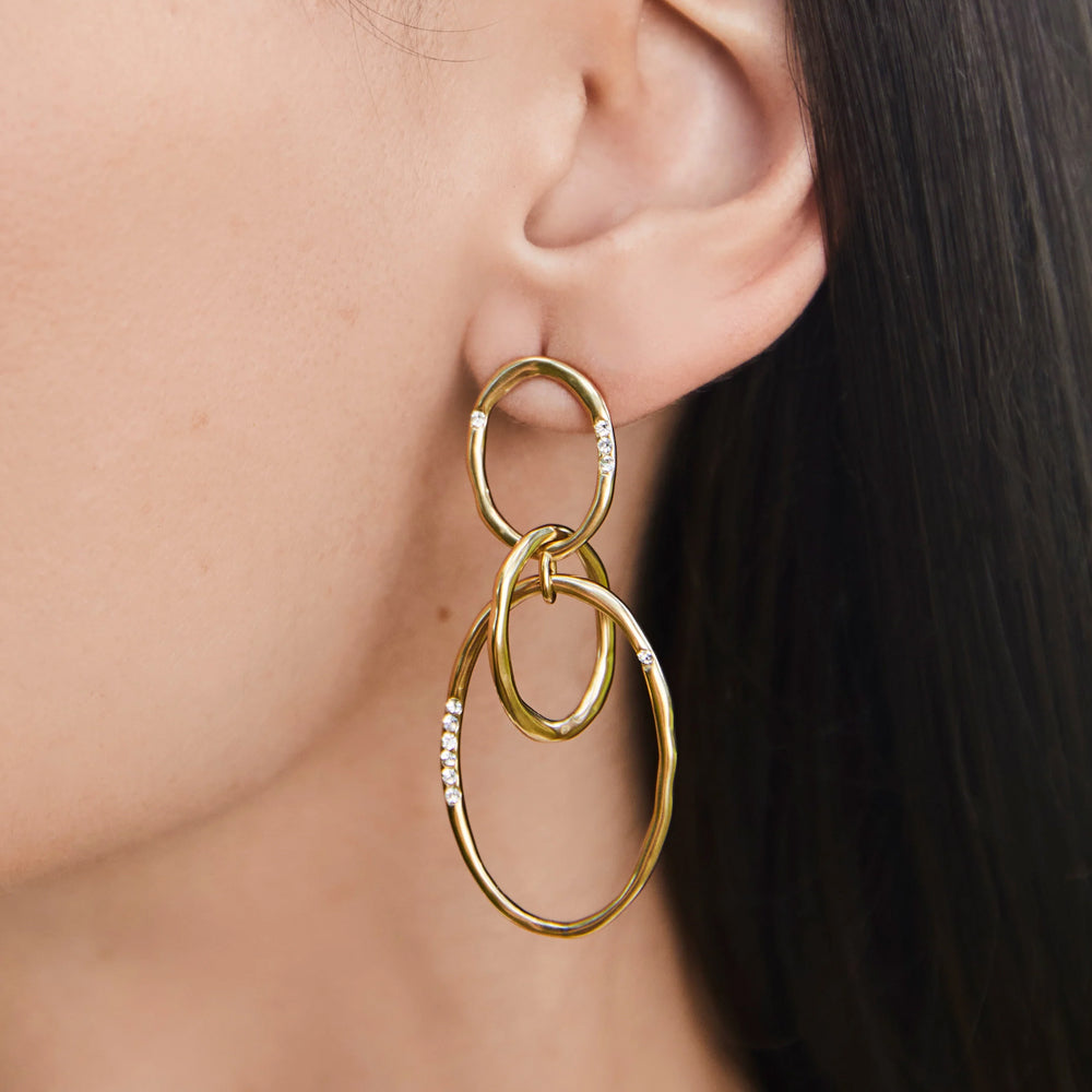 These lightweight delicately textured hoops are an everyday must have. Literally, wear them every day. Designed to shine through everyday wear, exercise, showers and a summer at the beach in tarnish free 14kt gold vacuum plating.