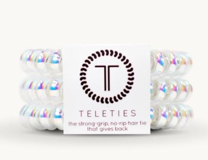 Hold your hair and enhance your style with TELETIES. The strong grip, no rip hair tie that doubles as a bracelet. Strong, pretty and stylish, TELETIES are designed to withstand everyday demands while taking your look to the next level. Large