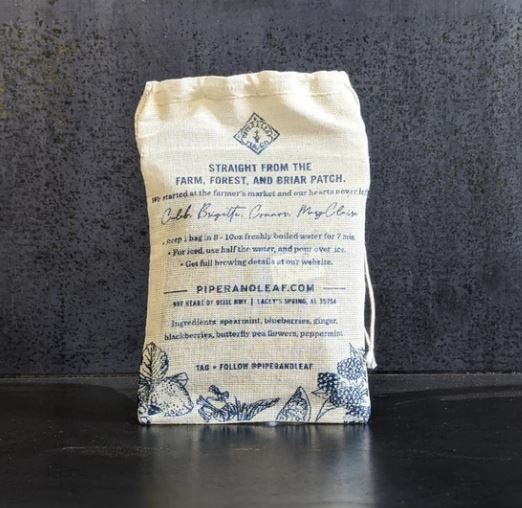 Packaged in our hand-printed muslin bags, you’ll find 9 pyramid sachets of tea ready to brew and waiting for you.