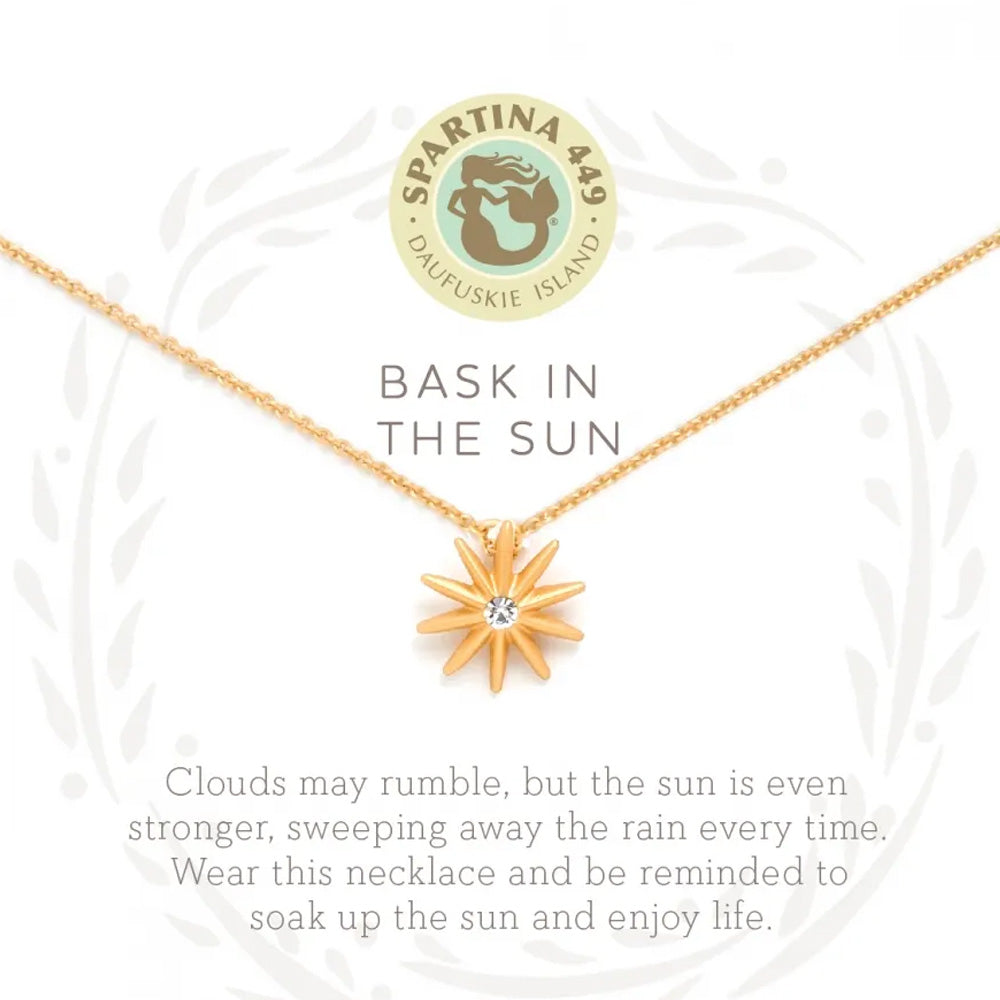 Wear our Bask in the Sun Necklace as a reminder to enjoy life. Featuring a sun charm, this special piece comes packaged inside a beautiful box with the message: "Clouds may rumble, but the sun is even stronger, sweeping away the rain every time. Wear this necklace and be reminded to soak up the sun and enjoy life."