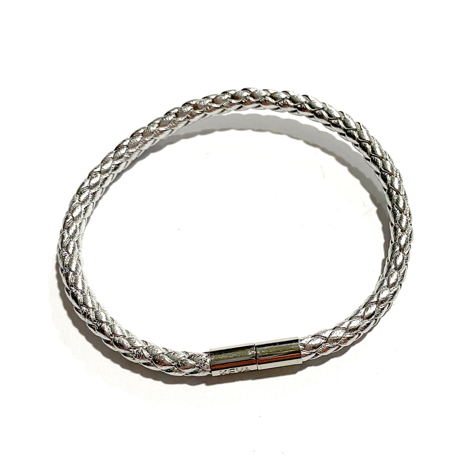 These bracelets are made of leather and have a magnetic closure for your convenience.