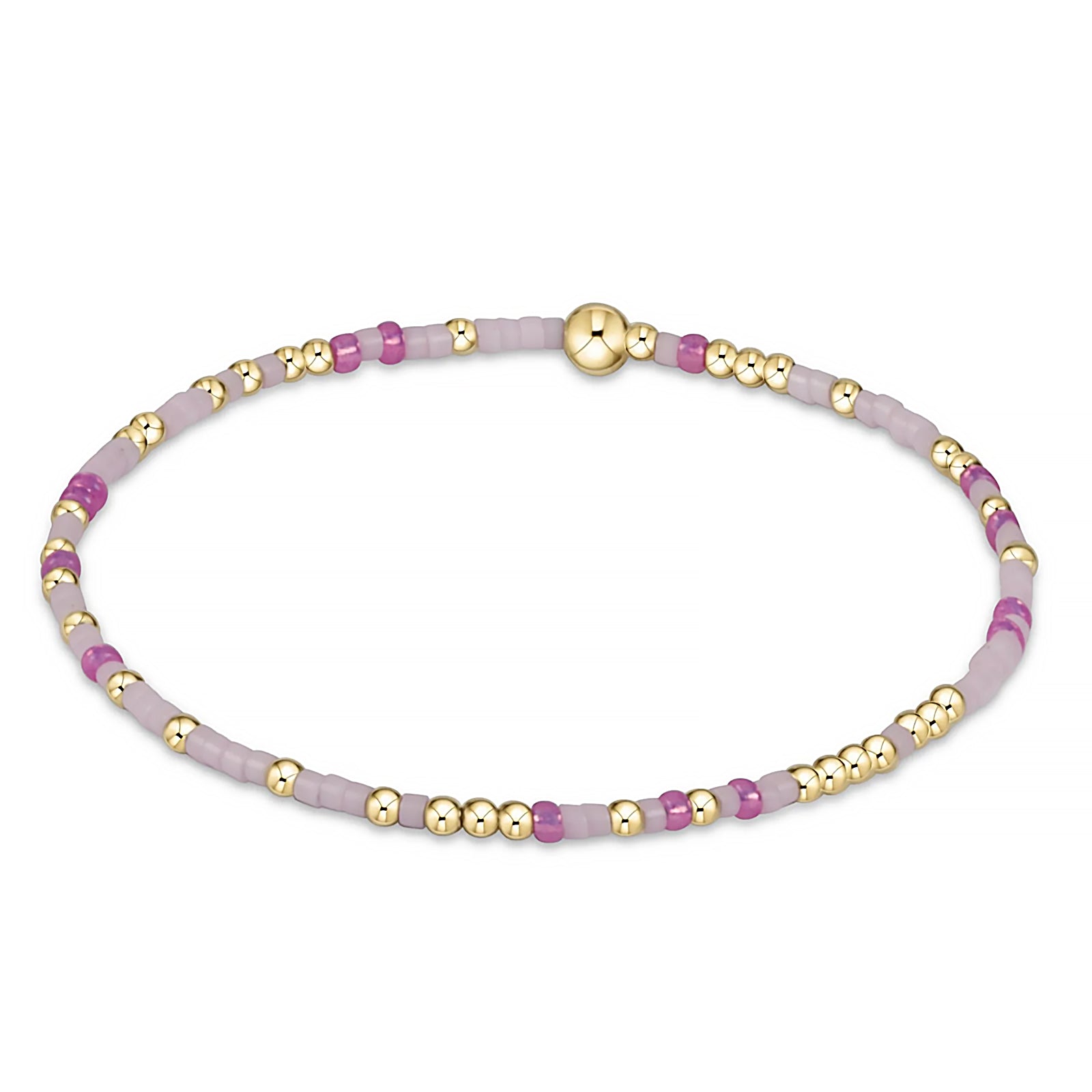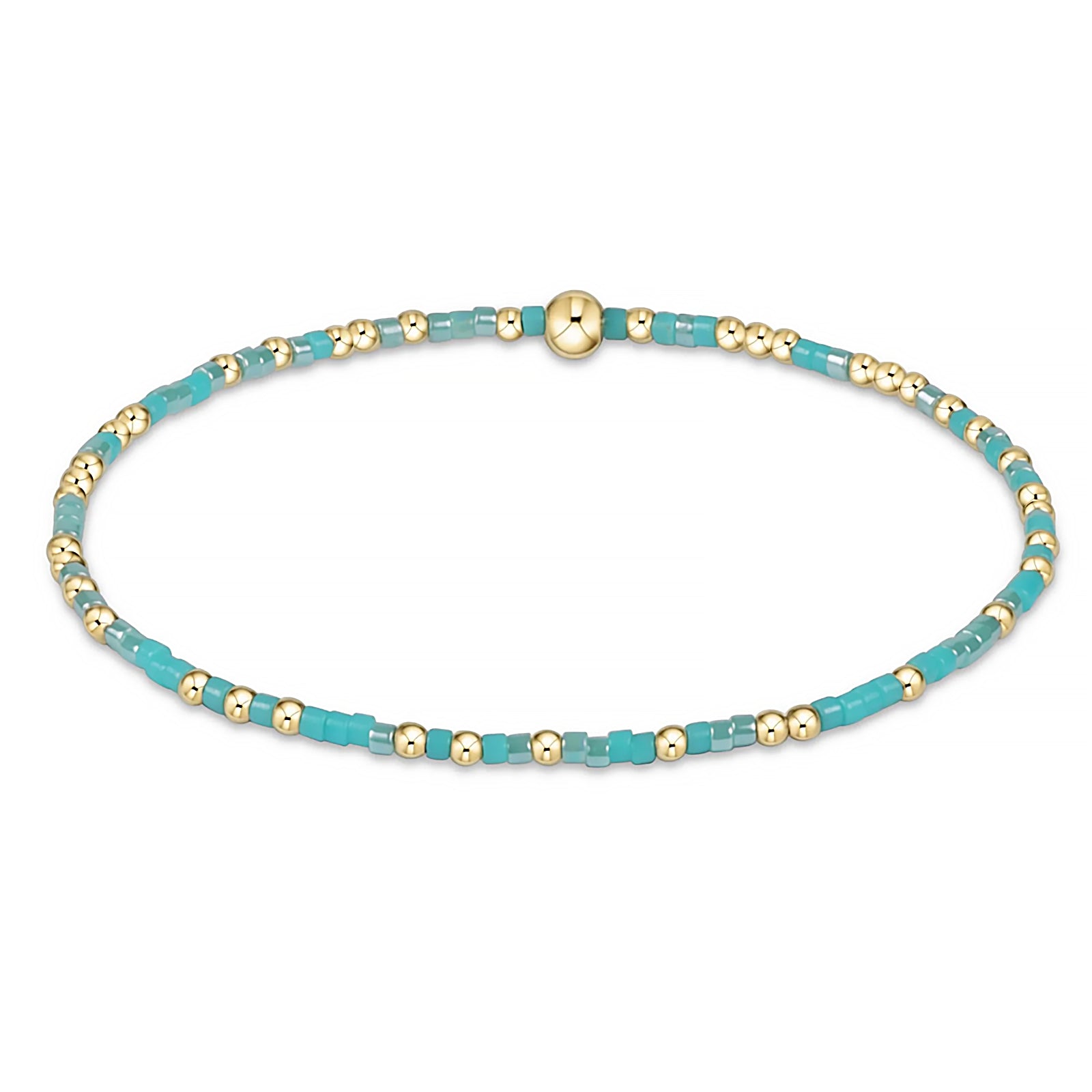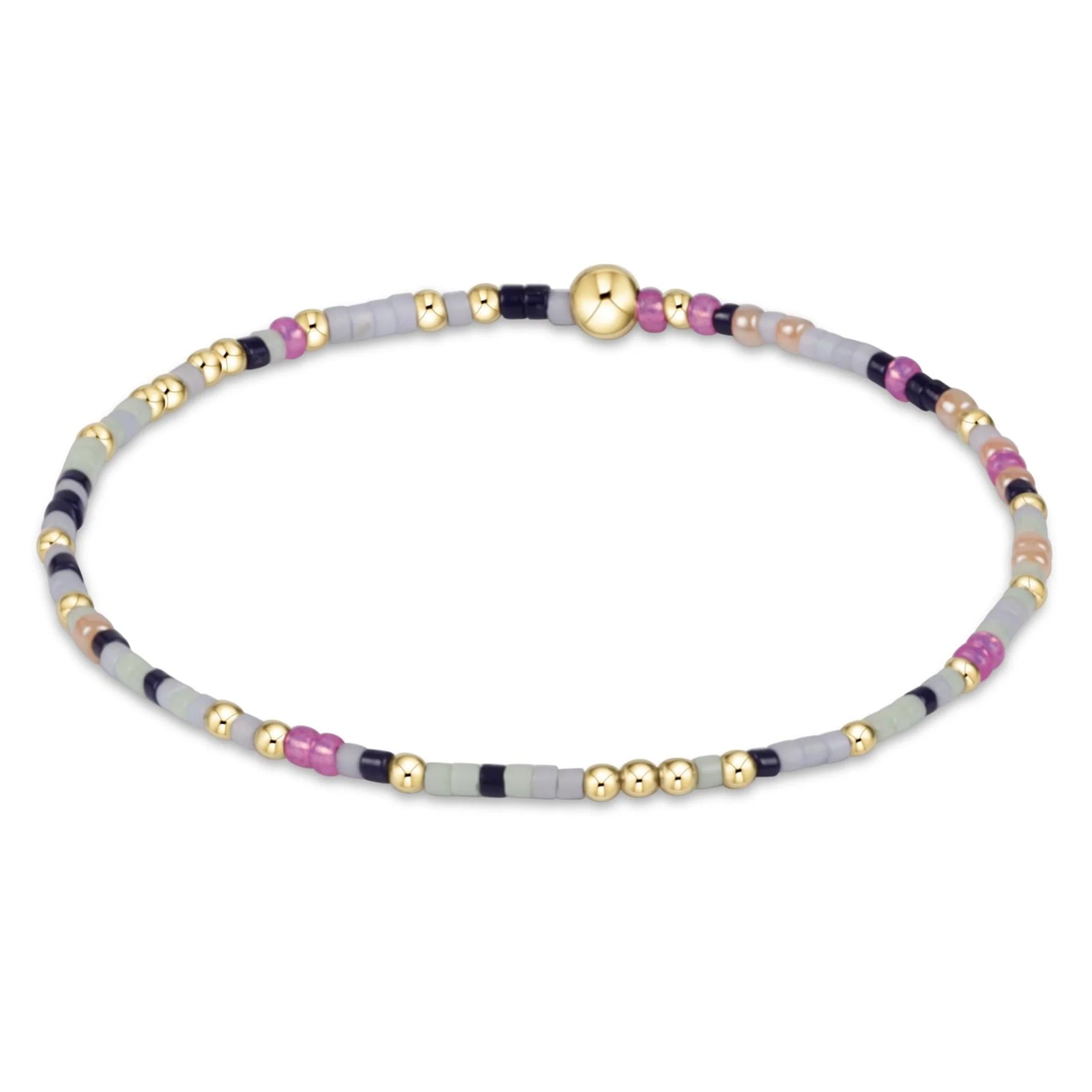 Hand beaded on high performance elastic for a slight stretch to easily roll on and off your wrist