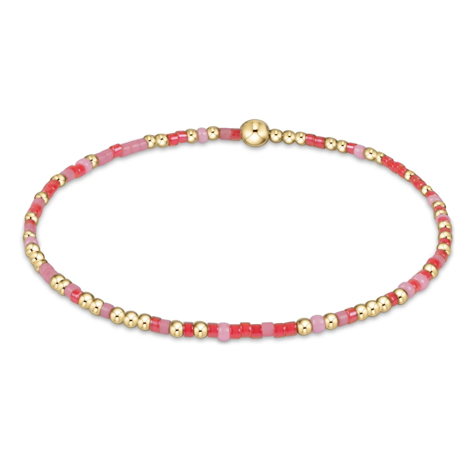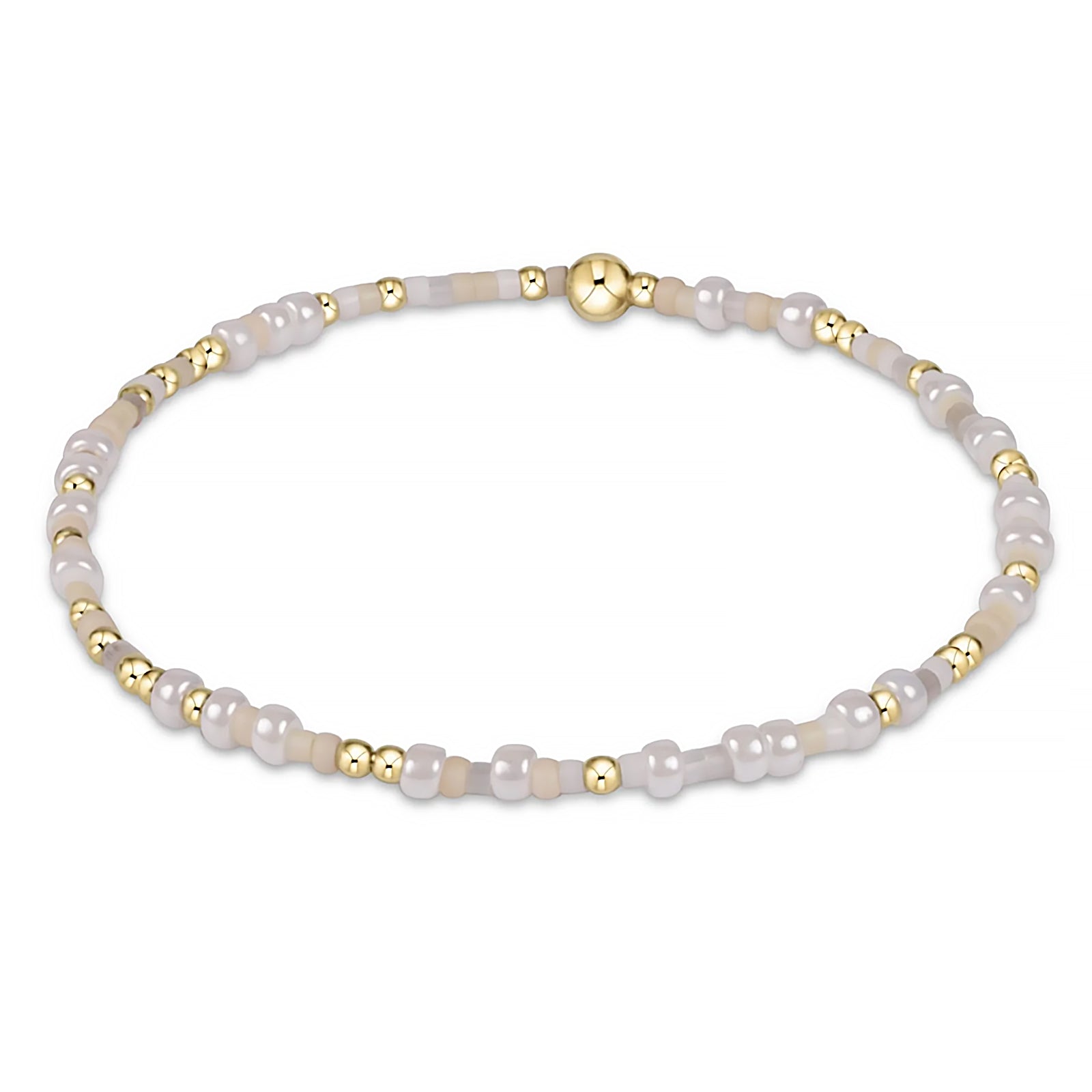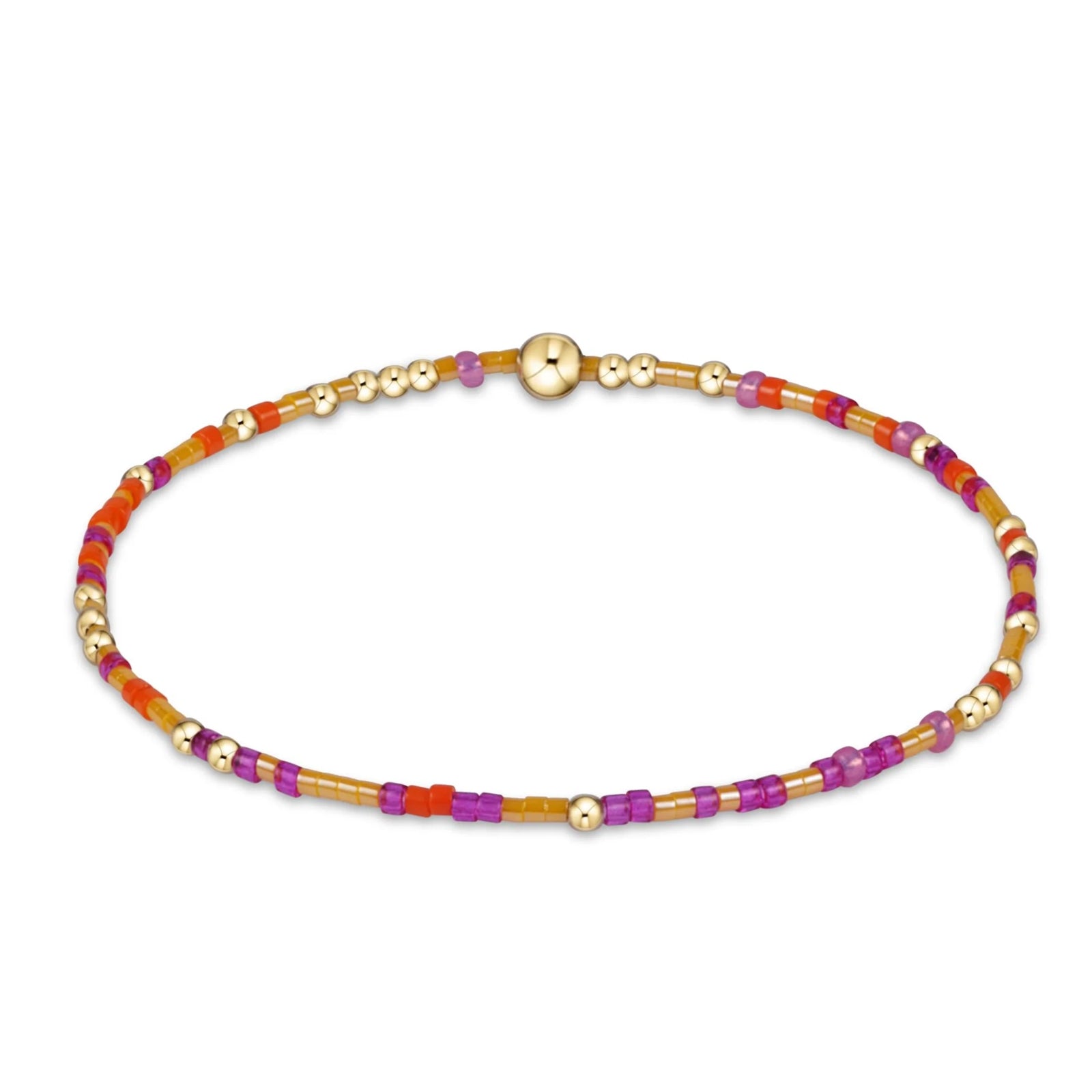 Hand beaded on high performance elastic for a slight stretch to easily roll on and off your wrist