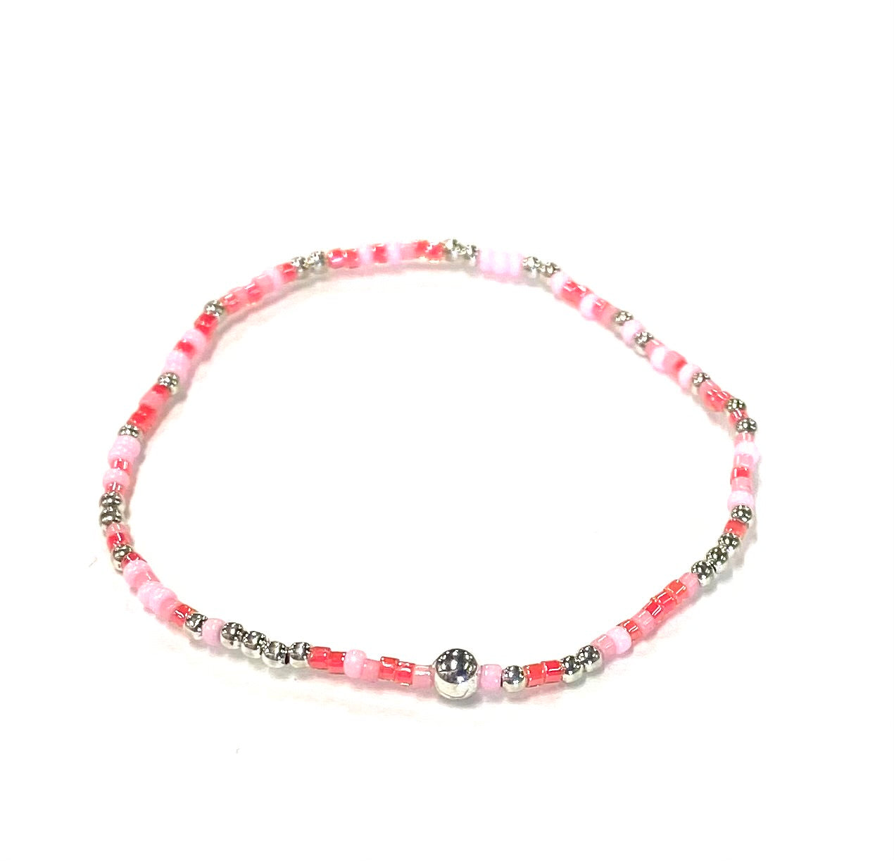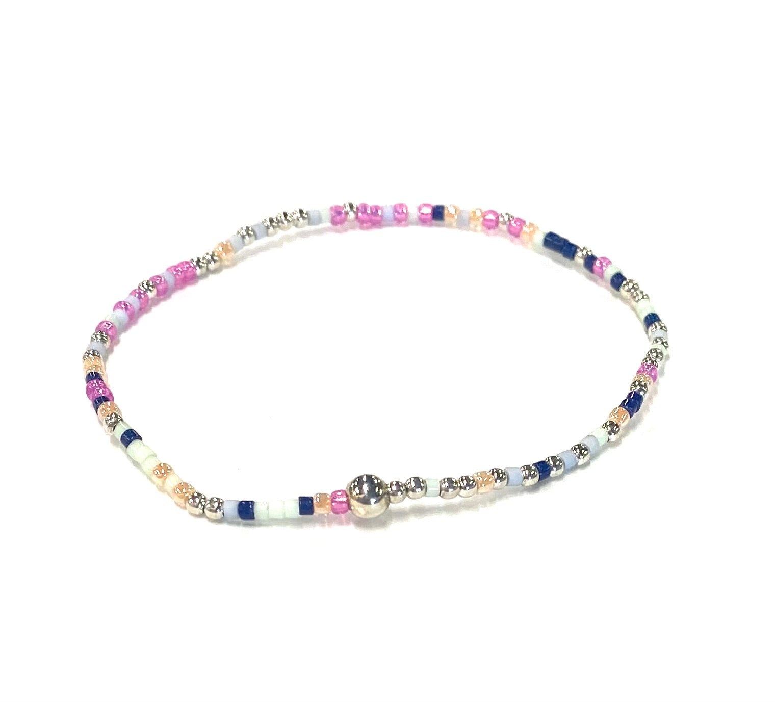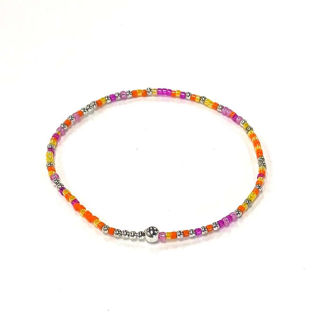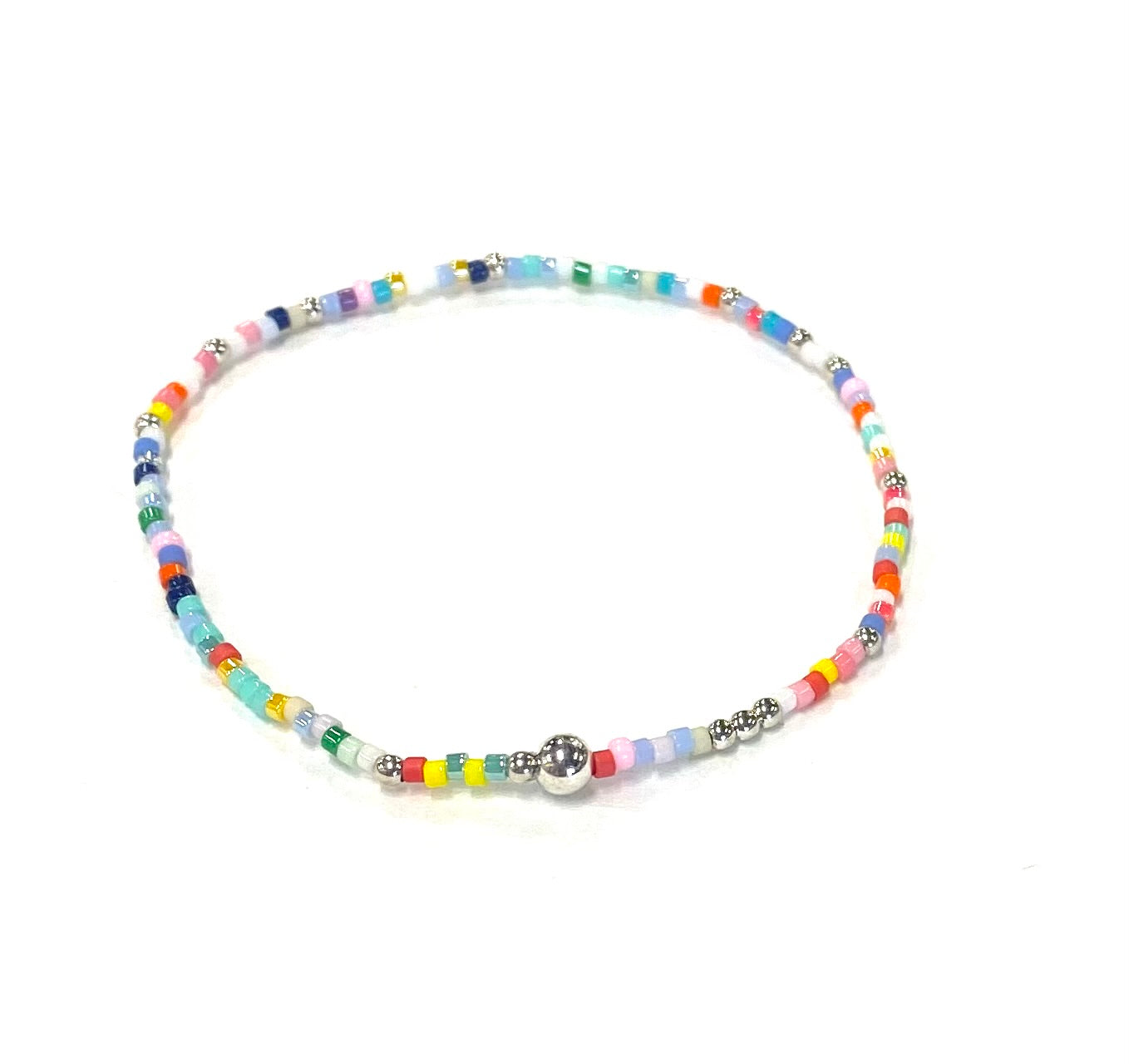 - Made with various colors of randomly mixed 2mm seed beads and 2mm sterling silver beads