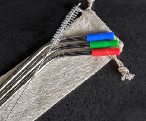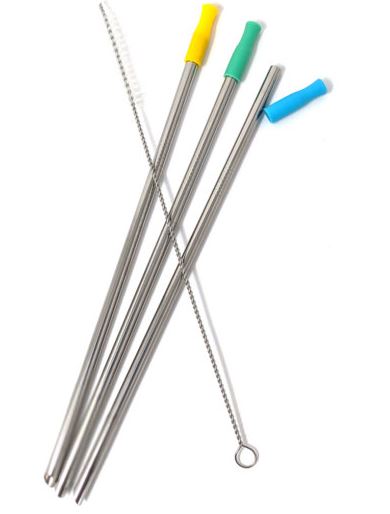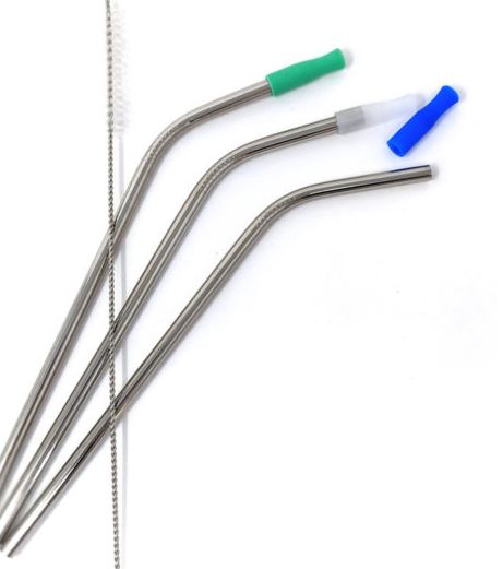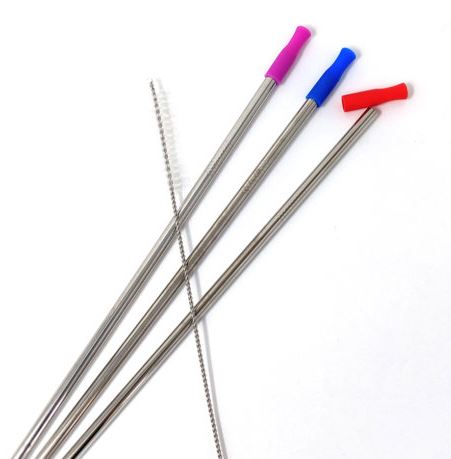 Our reusable metal straws, with silicone tips! These soft-bite tips are a fun and colorful way to protect your teeth from the hard metal of the straw. Plus they’re easy to remove for cleaning! This straw pack makes a great present for anyone.
