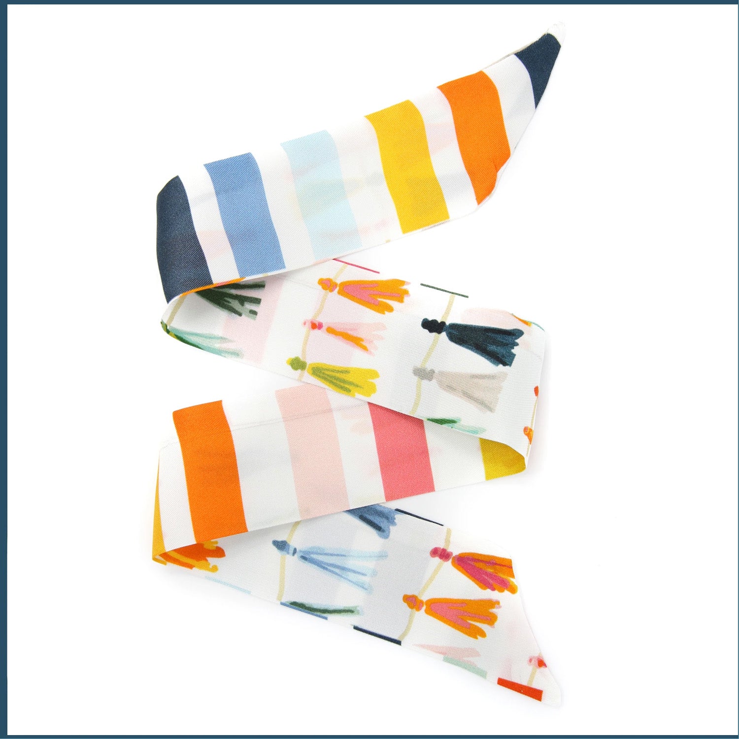 Whether you tie your Donna in your hair, around your wrist, or on your handbag, the Donna is a love note to all of the women in this world who make bold choices and lead with authenticity and kindness. Each design is drawn by hand or hand-painted and digitally printed onto luxurious 100% silk.